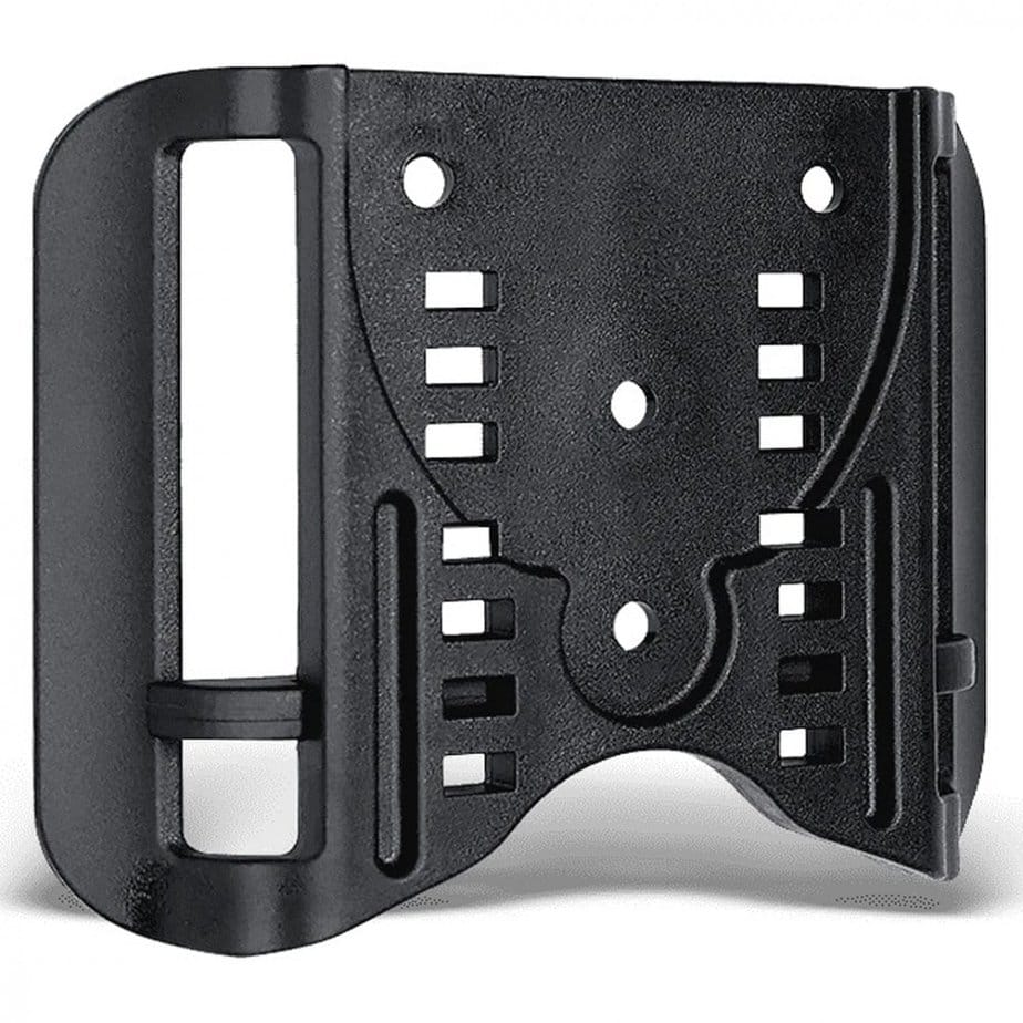 The Bladetech Double Wings ASR provides a stable and secure platform that can be attached to a wide variety of holsters. Featuring a movable wedge, it allows for adjustment on belts up to 5,9 inches. The ASR pulls the holster closer to the body and its wide loops also create additional stability, preventing the holster from moving.